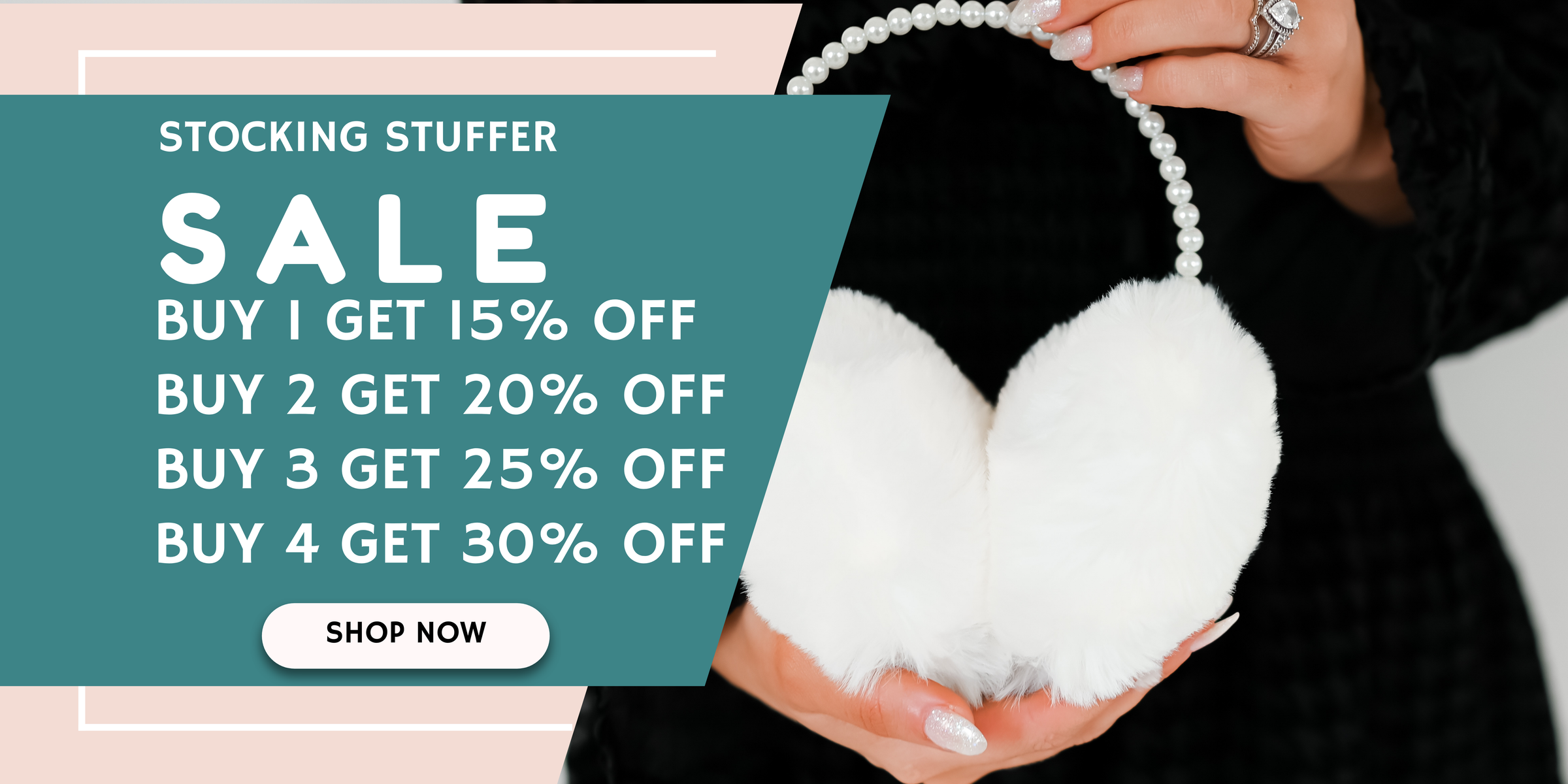 Stocking Stuffer Sale going on NOW! Buy one get 15% off, buy two get 20%, buy three get 25%, buy four get 30% off! Discount auto-applies in cart.