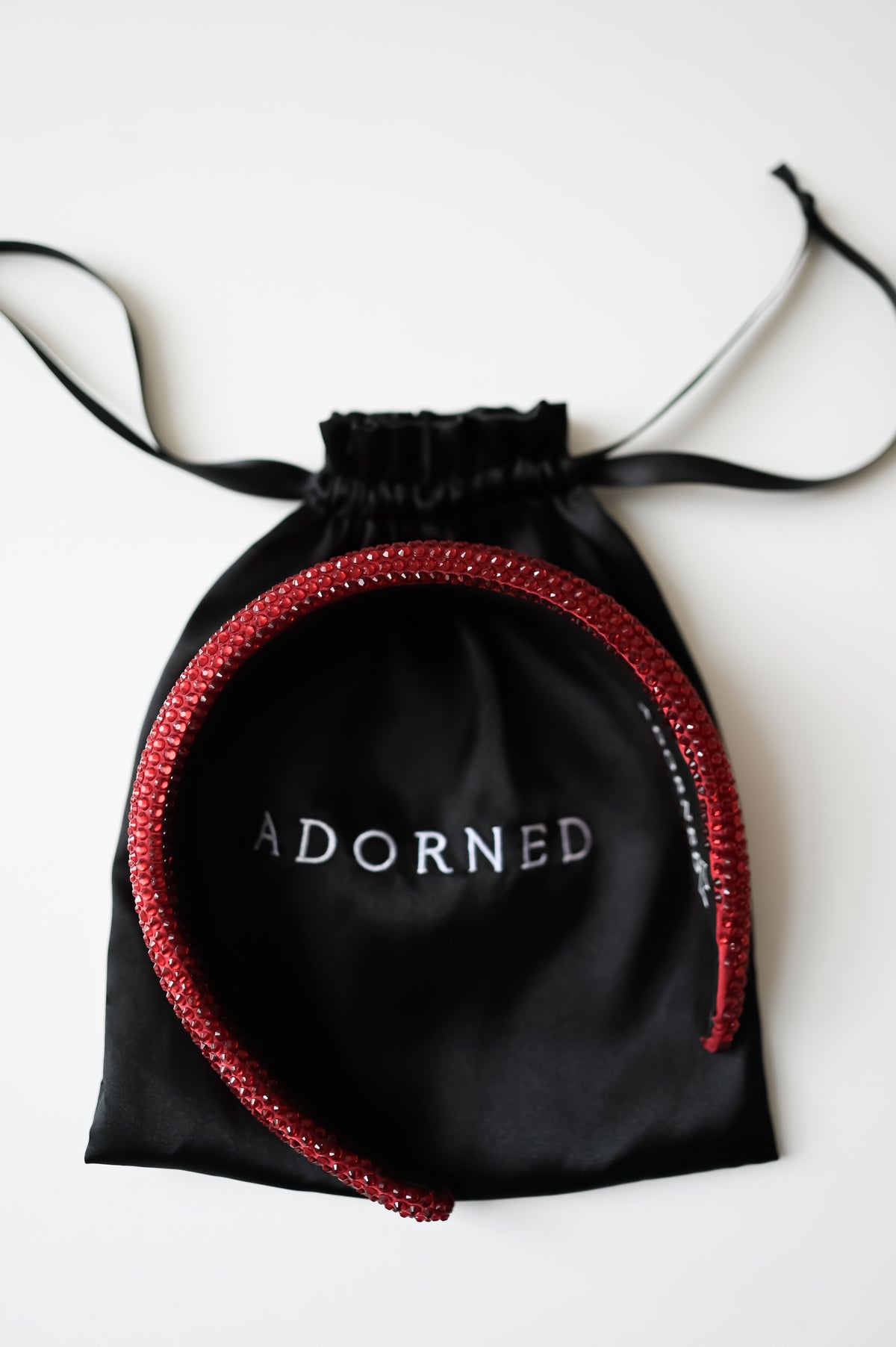 Crowns, Slim Crowns, Tiaras, Headpieces, Satin Bow Clips, Rhinestone Hats, & Crystal Scrunchies: Store your pieces in their boxes or pouches in a cool, dry place away from any direct heat sources. For longevity and color retention, we recommend limiting exposure to humidity, dust, and sunlight. Marks or stains can be spot-treated with cool water or a gentle detergent if necessary. Air-dry only.