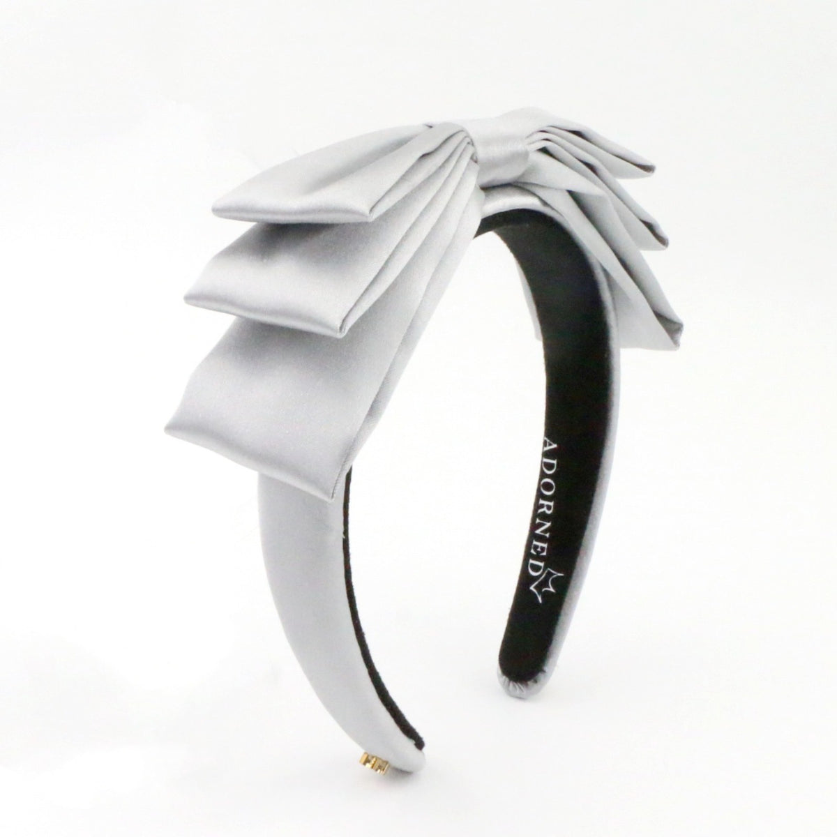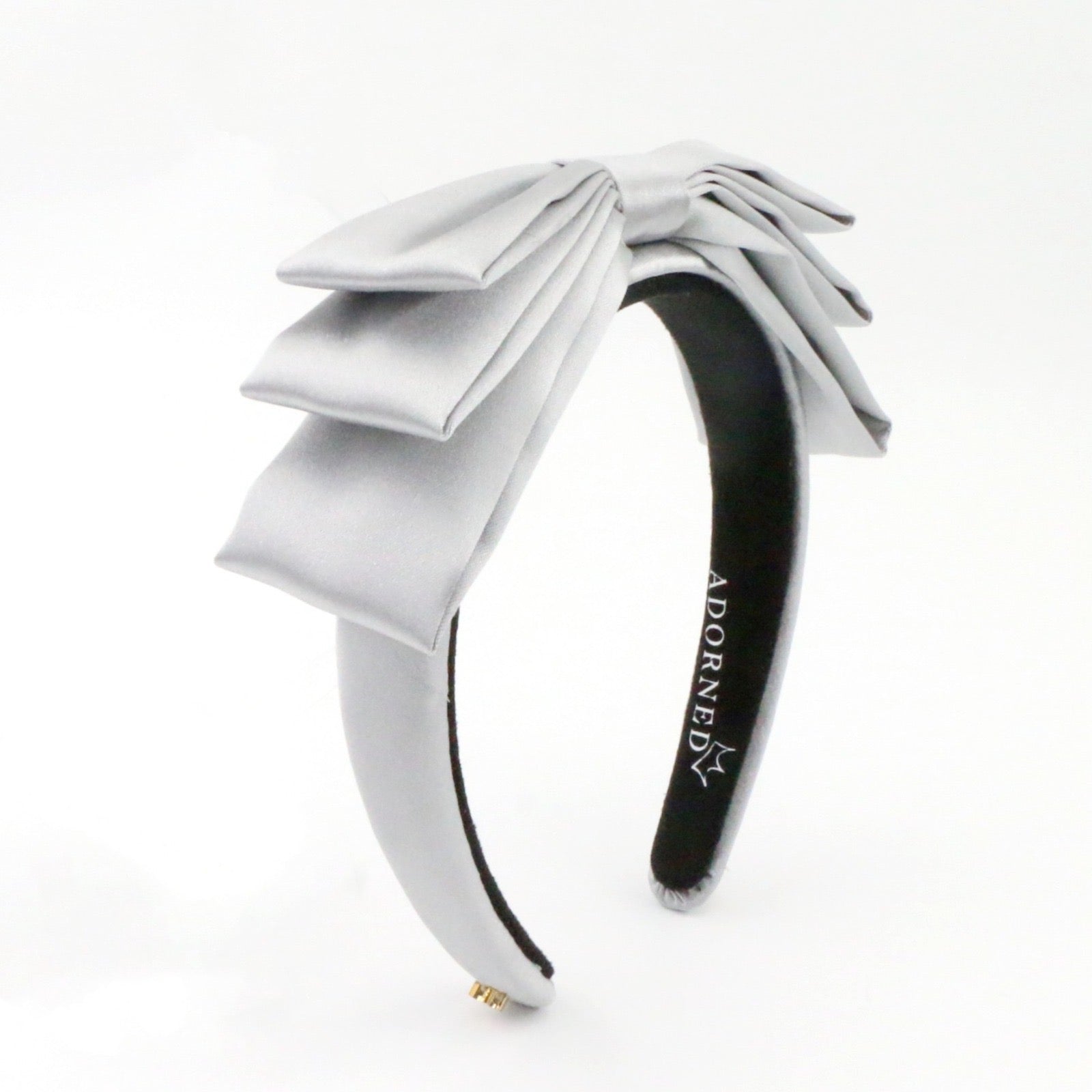 Silver satin band with a triple loop satin bow