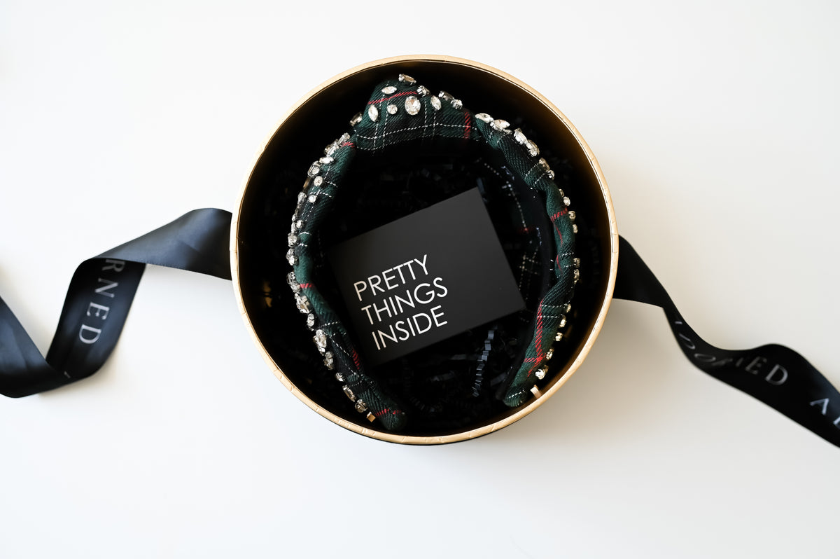 Handcrafted with the finest materials, Adorned's Crowns blend luxury with all-day comfort. The Vivian Crown (with dustbox) arrives in our custom Adorned round black dustbox and features: