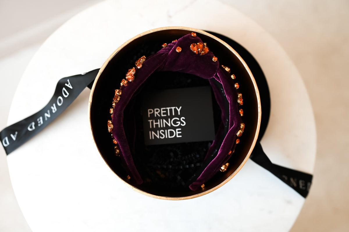 Handcrafted with the finest materials, Adorned's Crowns blend luxury with all-day comfort. The Autumn Crown (with dustbox) arrives in our custom Adorned square black dustbox and features:
