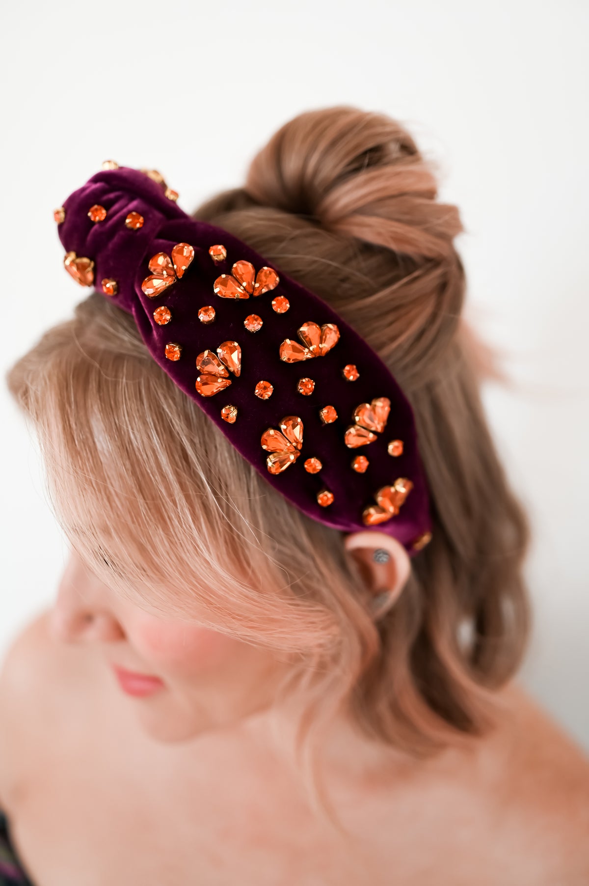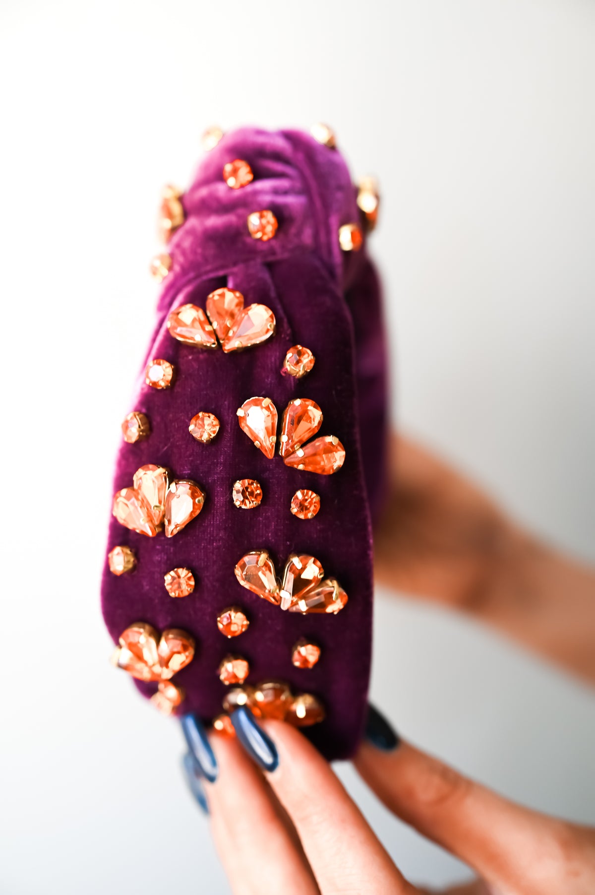 Crowns, Slim Crowns, Tiaras, Headpieces, Satin Bow Clips, Rhinestone Hats, & Crystal Scrunchies: Store your pieces in their boxes or pouches in a cool, dry place away from any direct heat sources. For longevity and color retention, we recommend limiting exposure to humidity, dust, and sunlight. Marks or stains can be spot-treated with cool water or a gentle detergent if necessary. Air-dry only.