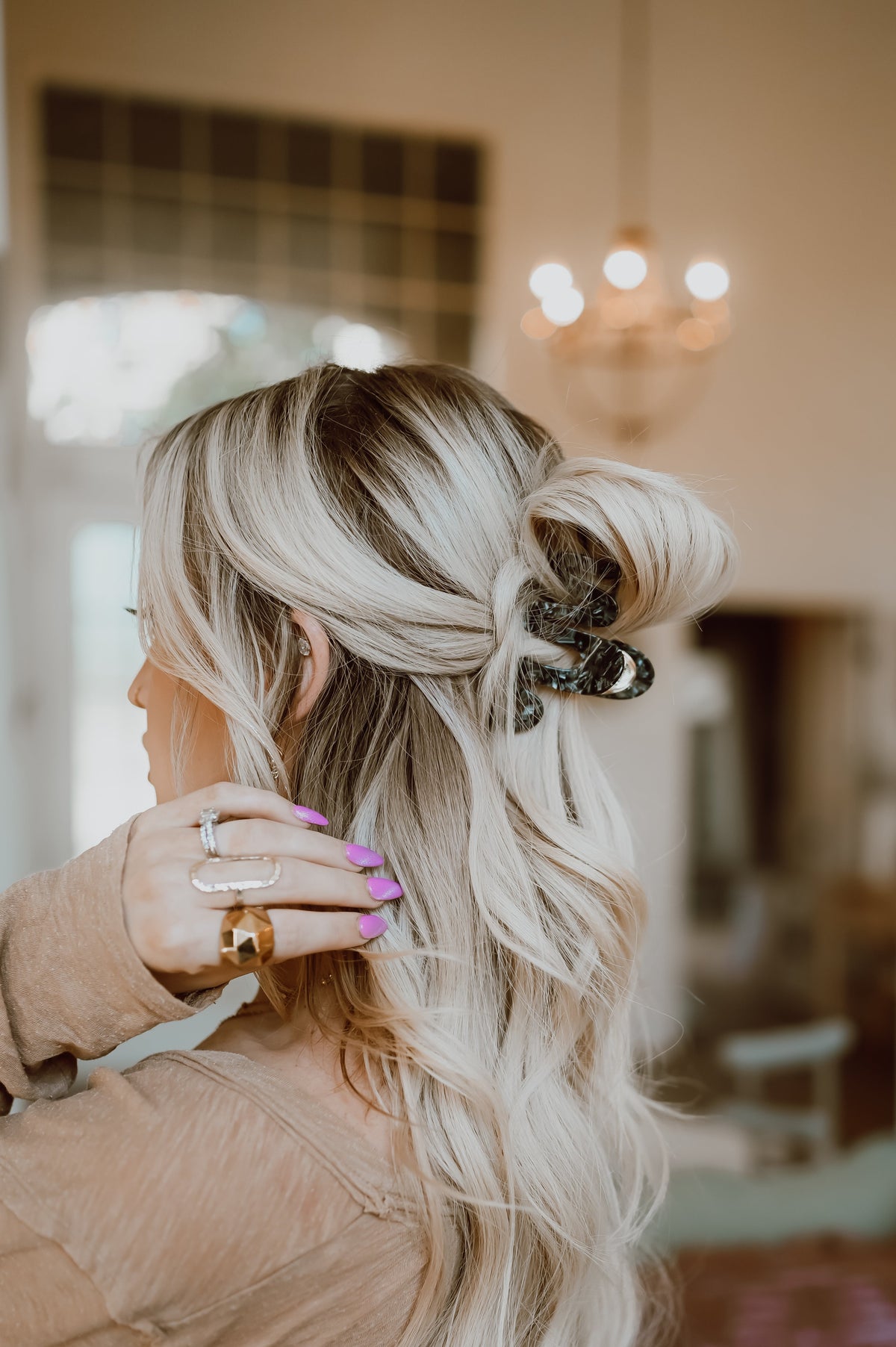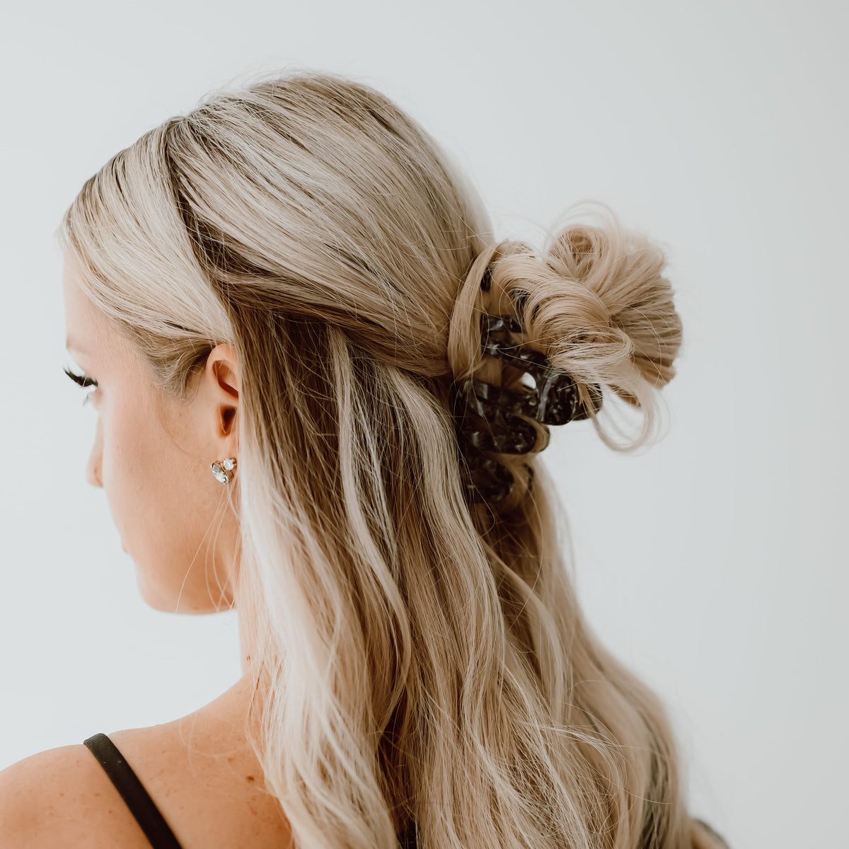 Meet our best-selling large Claw Clips! Crafted with premium materials and beautiful accents, these clips ensure a reliable hold with a refined look. Our Black Sapphire Claw Clip features: