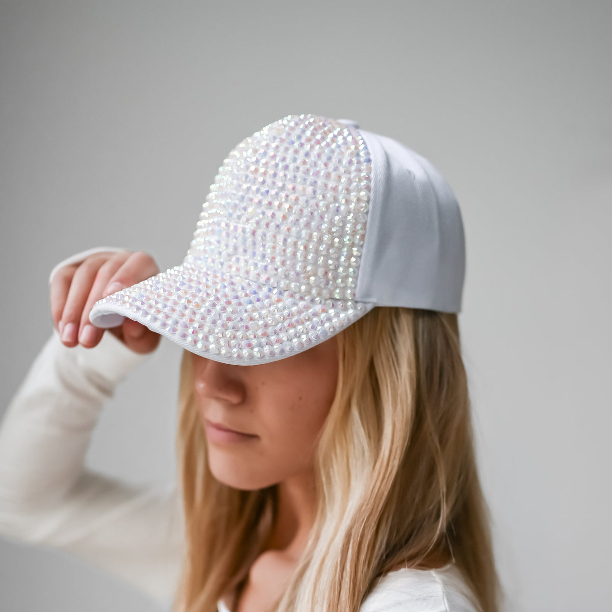 Elevate your everyday look with our rhinestone-studded hats, blending casual comfort with a touch of sparkle for effortless style! Each hat arrives in a custom Adorned embroidered XL satin pouch for convenient storage and travel.