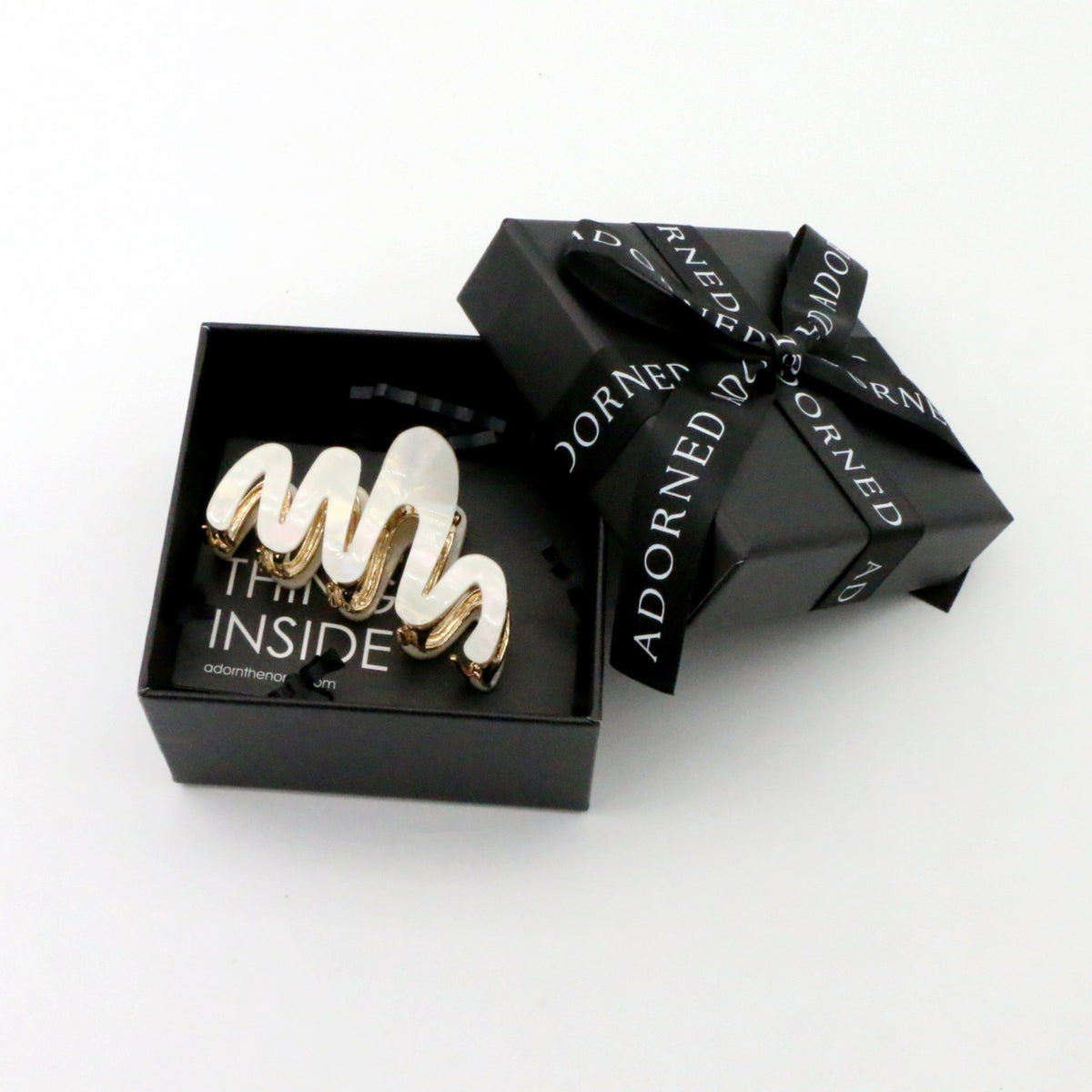 Adornments & GRWM Clips: Avoid exposing your hair clips to moisture and apply styling products before using to prevent tarnishing. Store dry inside box when not in use and handle with care.