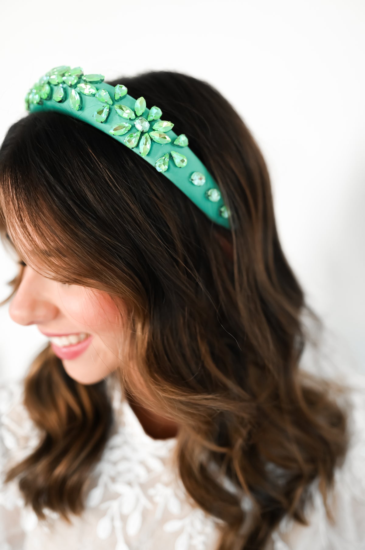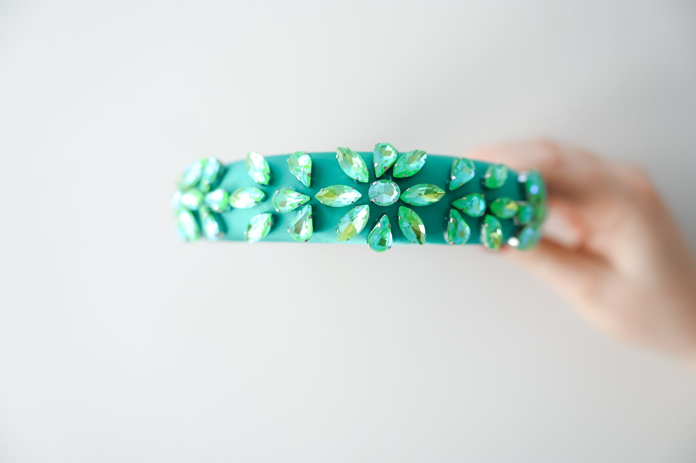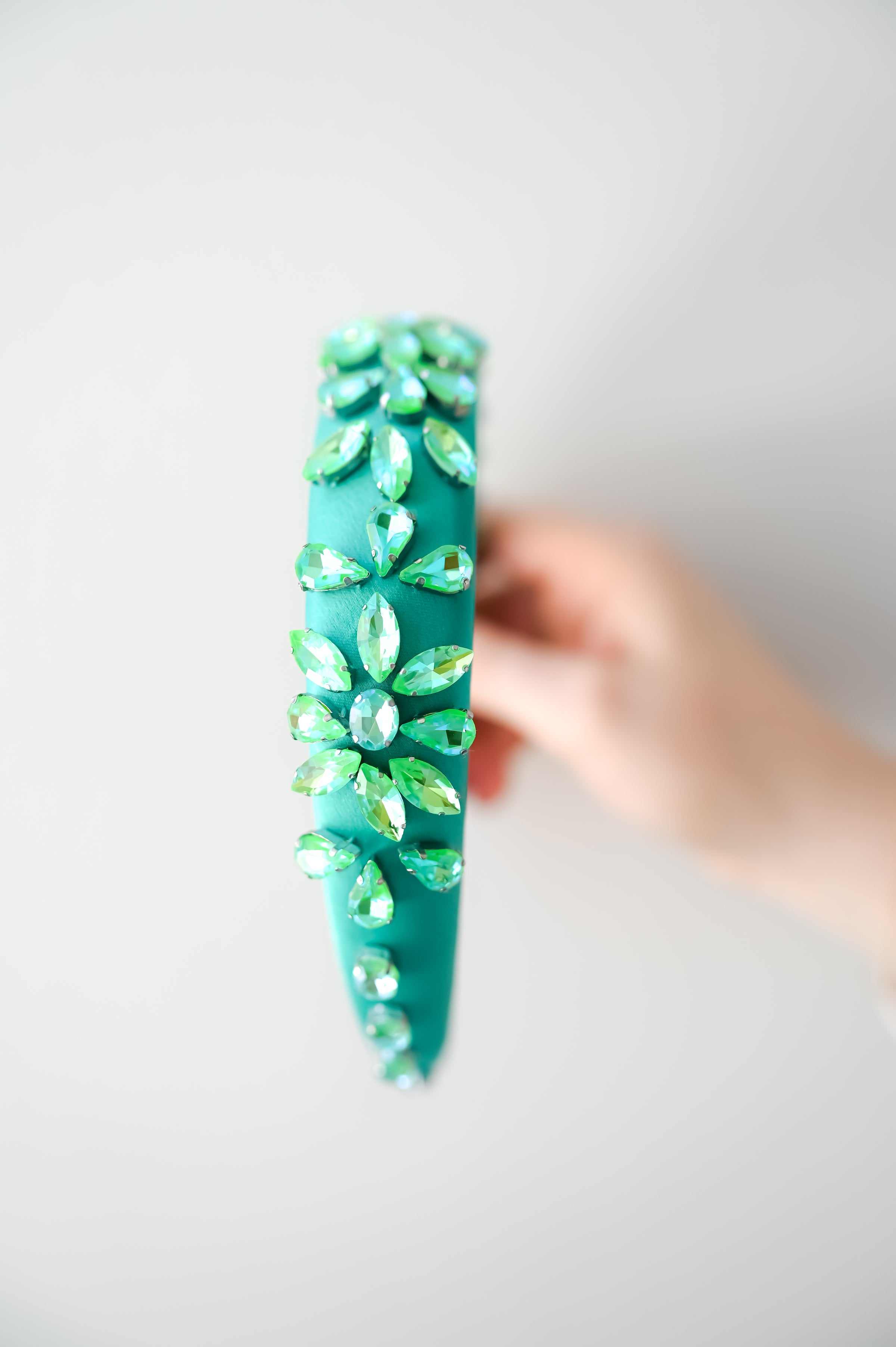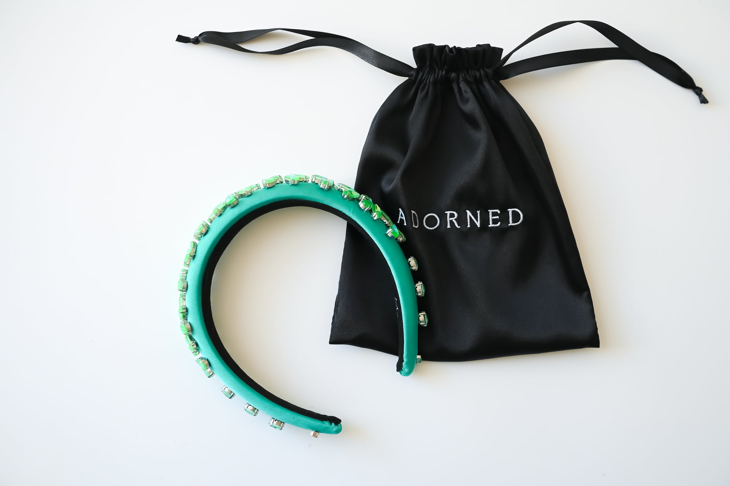 Crowns, Slim Crowns, Tiaras, Headpieces, Satin Bow Clips, Rhinestone Hats, & Crystal Scrunchies: Store your pieces in their boxes or pouches in a cool, dry place away from any direct heat sources. For longevity and color retention, we recommend limiting exposure to humidity, dust, and sunlight. Marks or stains can be spot-treated with cool water or a gentle detergent if necessary. Air-dry only.