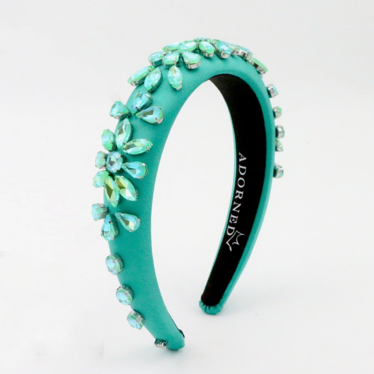 - Teal satin band with 180-degree flex for maximum comfort