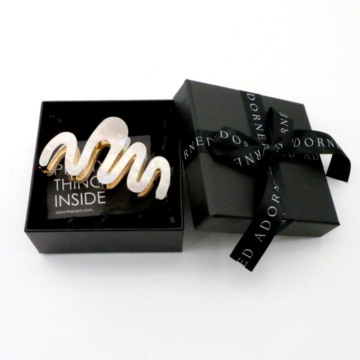 - Arrives in a signature Adorned square box for travel and storage