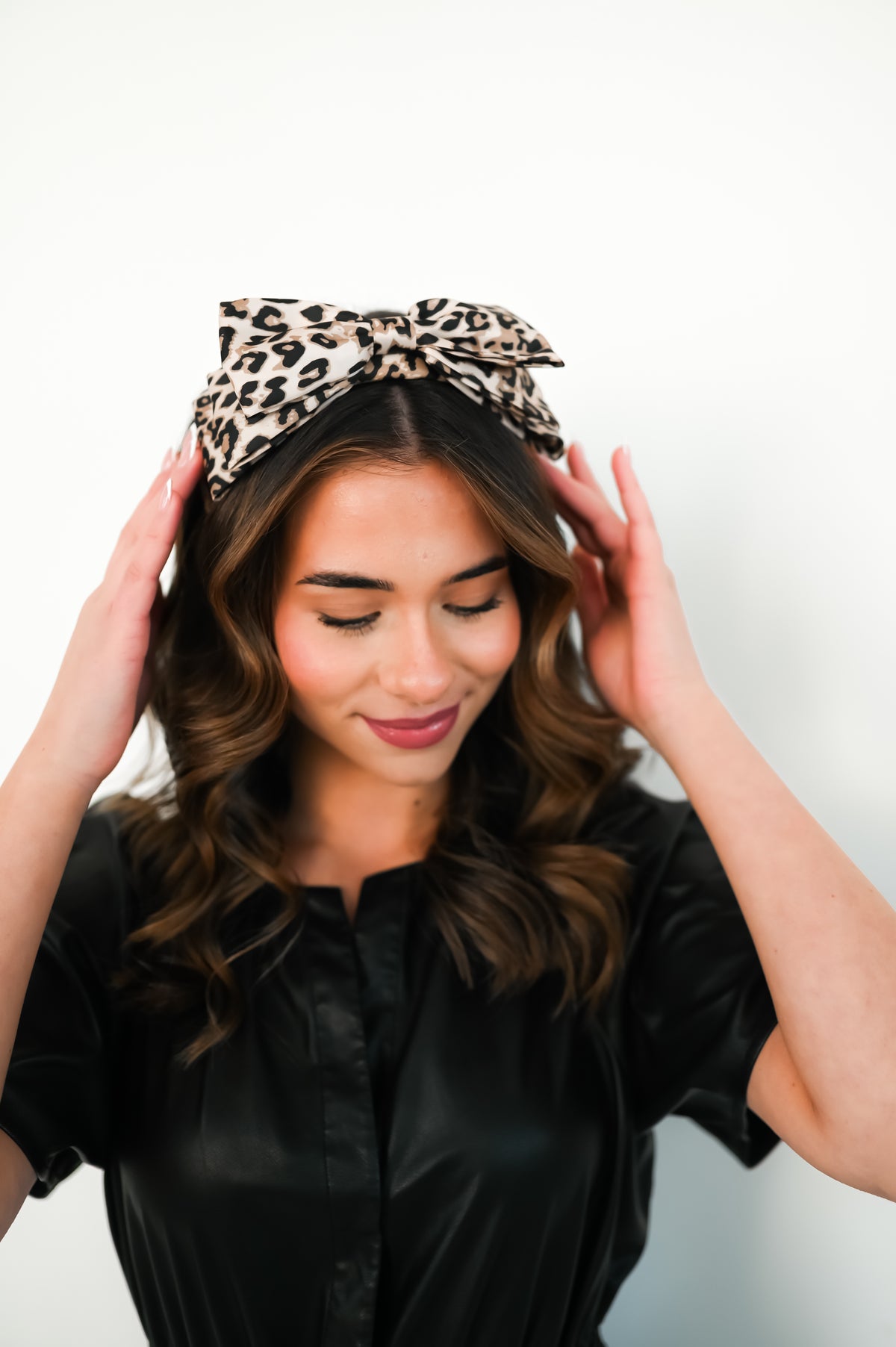Leopard print satin with a triple loop satin bow