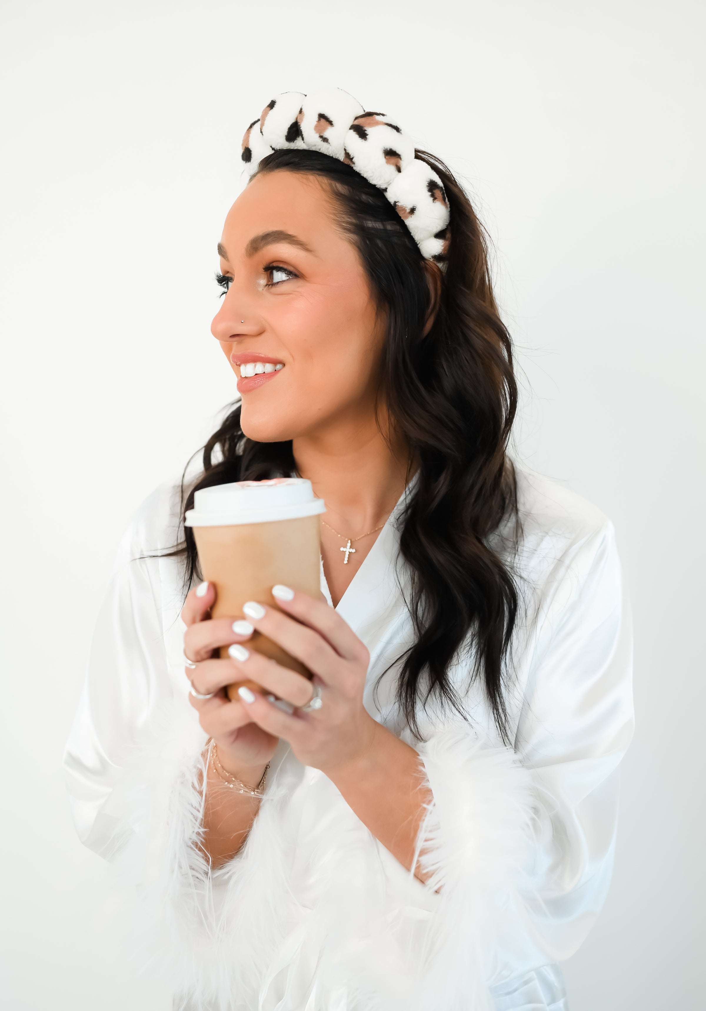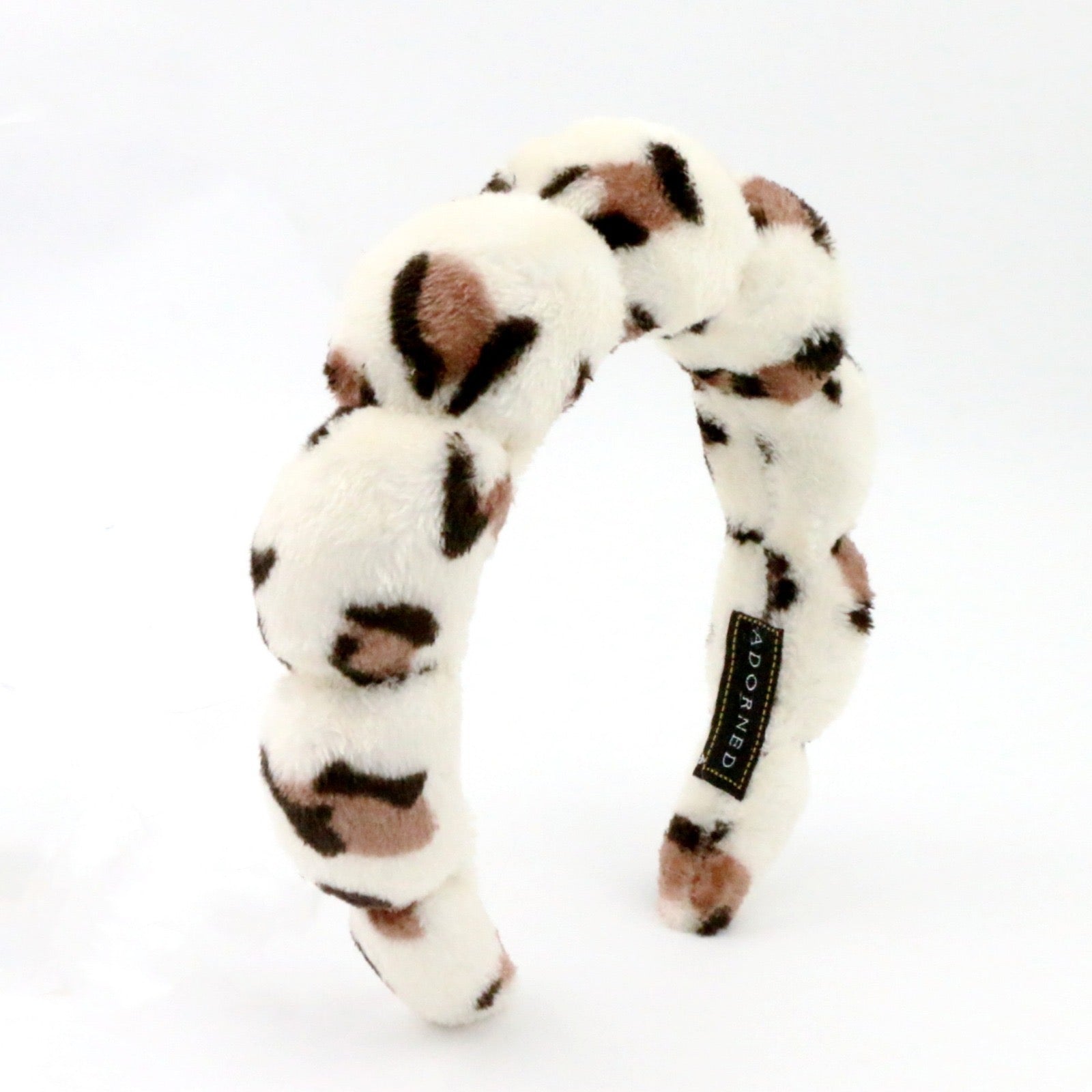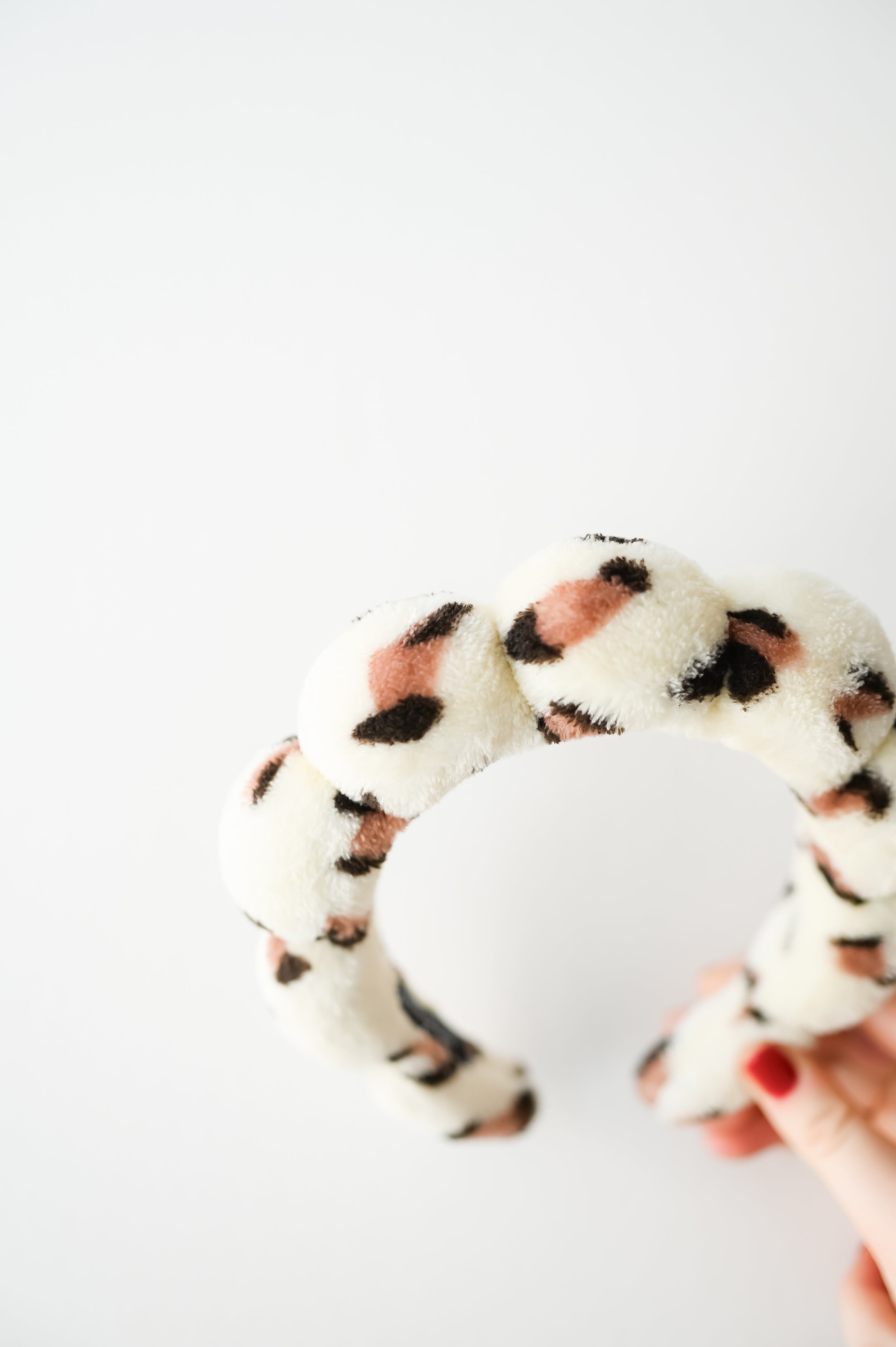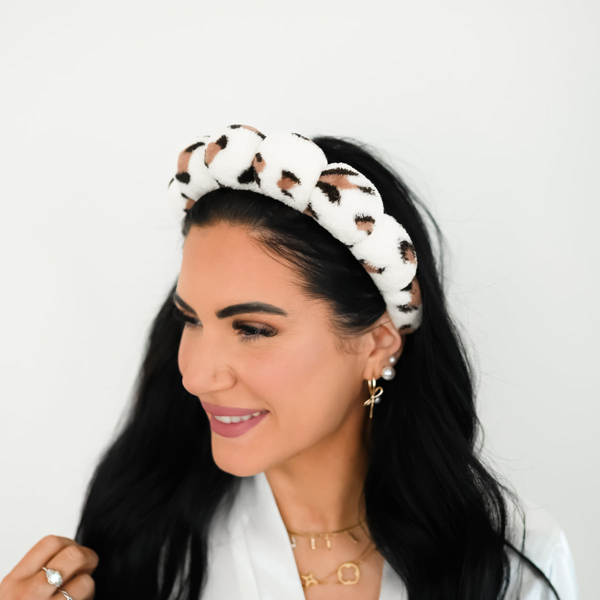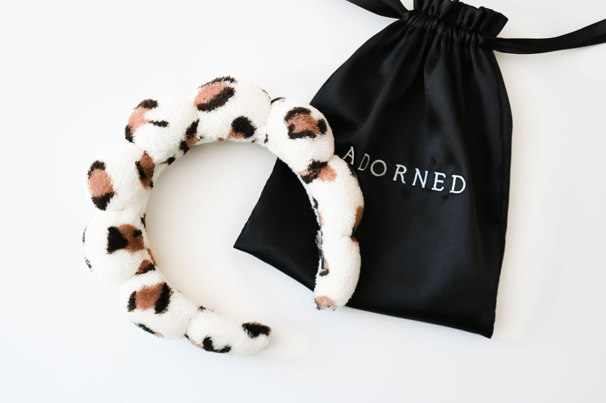 Whether you're lounging in a plush robe, applying your skincare, or doing your makeup, our Luxe Spa Headbands add a plush and practical touch to your routine. The Wild Whisper Headband features:
